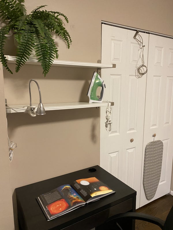 This cozy room in a condo offers comfort and functionality, perfect for someone seeking a convenient living space. The bedroom features a full-sized bed, and a desk with a chair for work or study. The hardwood floors give the room a polished look, and a regular closet provides ample storage.