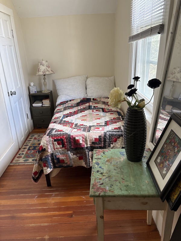 Two rooms on 2nd floor of small house - together $750; utilities $100. I am semi-retired, studying art and will be here just a few days a week so you will virtually have house to yourself. 1 small bath and kitchen downstairs as well as 3 room to at are mine. Quiet, respectful and interesting and am looking for same.