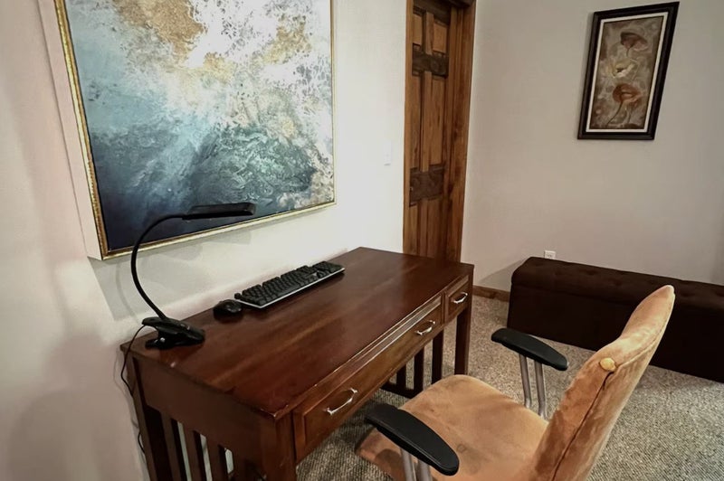 Private guest room with attached bathroom Fresh linens and a stocked mini-fridge Seasonal air conditioning and ceiling fan A treadmill and an elliptical machine so you won’t miss a workout Freshly ground coffee or tea provided by your host Peaceful deck overlooking nature Free Wi-Fi We’re also pet-friendly! Well-behaved dogs are welcome on a case-by-case basis. Please note that pets cannot be left unattended and must get along with our three friendly Standard Poodles. A pet fee of $18 per pet, per week applies.