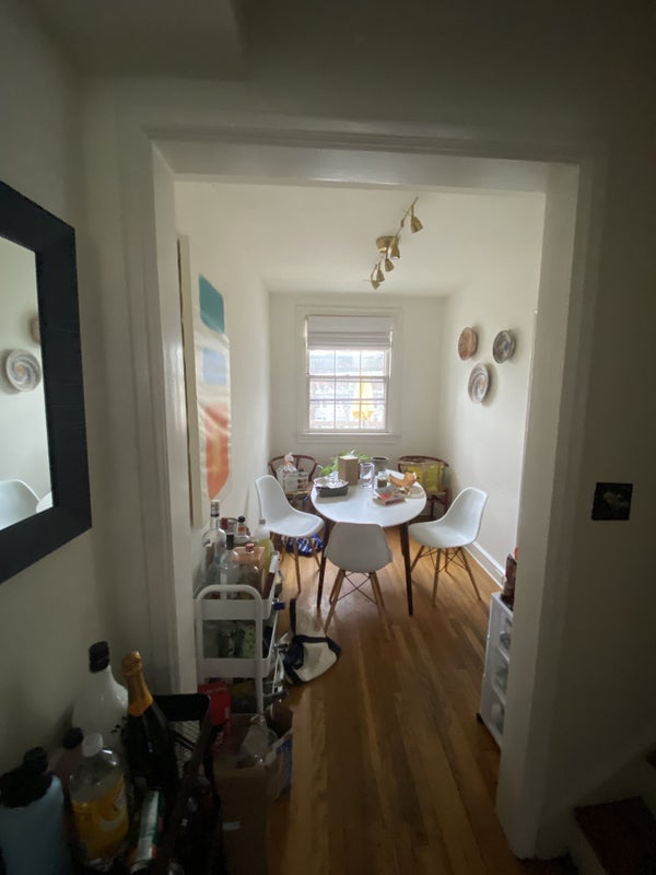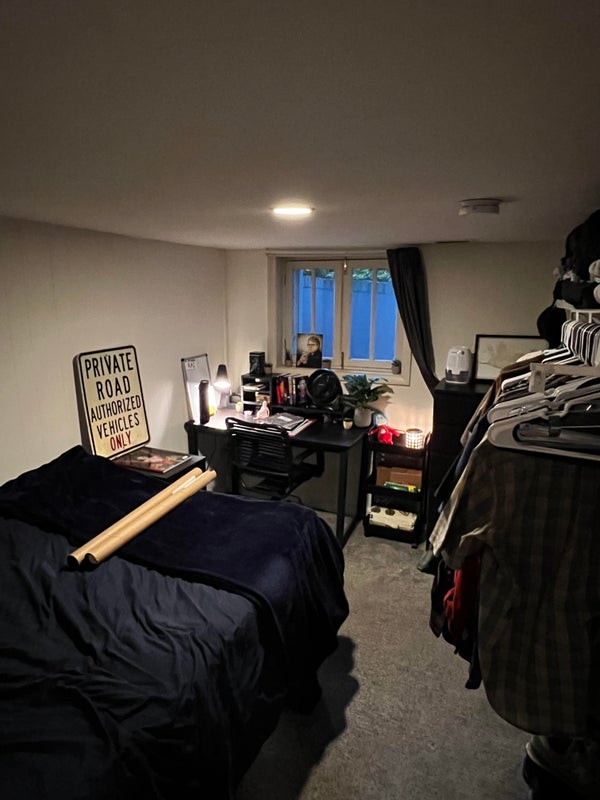 About the Space: The house has 6 bedrooms total: 2 on the first floor and 4 on the third. On the second floor are the kitchen and the living room. There is a bathroom on the first and third floors. This room is one of the large ones on the first floor. Each of the other inhabitants is male.