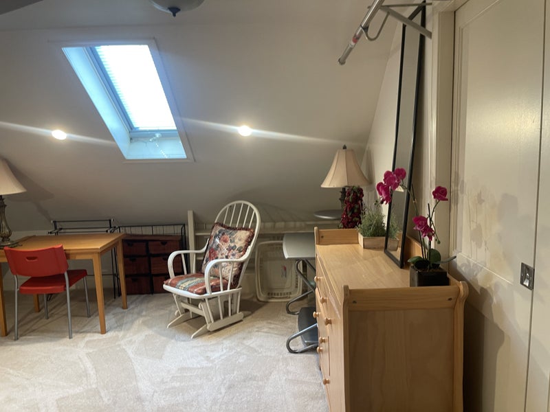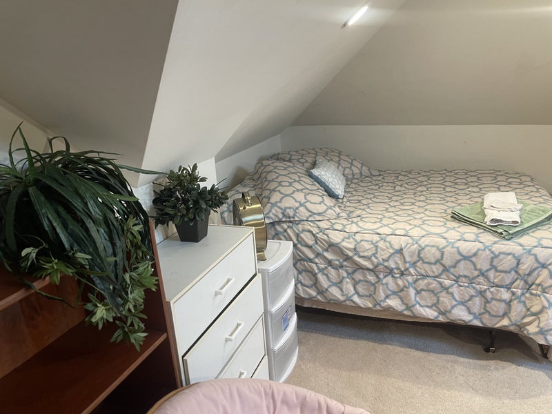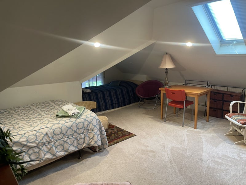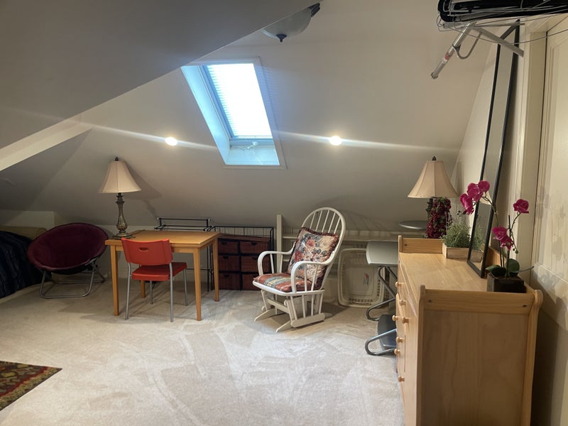We are very centrally located and you can get to any point in the city in a flash!! Huge room - 22 ft by about 19 ft across - quiet - bathroom right across - it is on the top floor of the house - separate floor altogether- To share with one other wonderful professional male roommate above .on the same floor . The house has 4 levels -