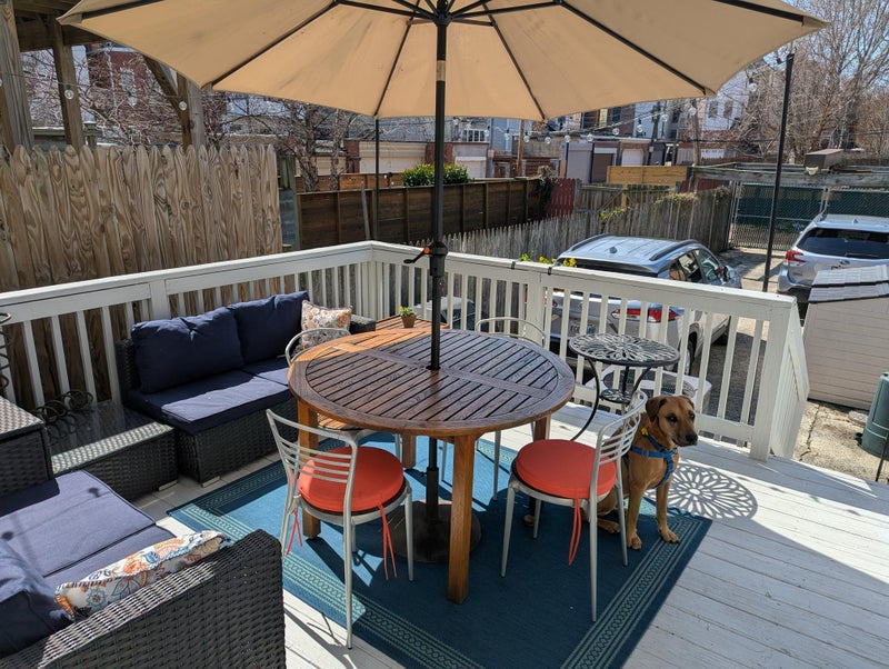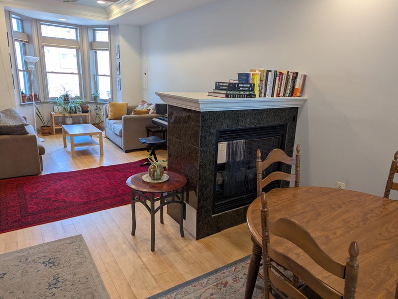 -Central A/C and heat -Hardwood floors throughout -In-unit washer/dryer -Dishwasher -Finished attic for storage -Outdoor space (front yard, backyard, and patio) -Gas fireplace -Off-street parking available