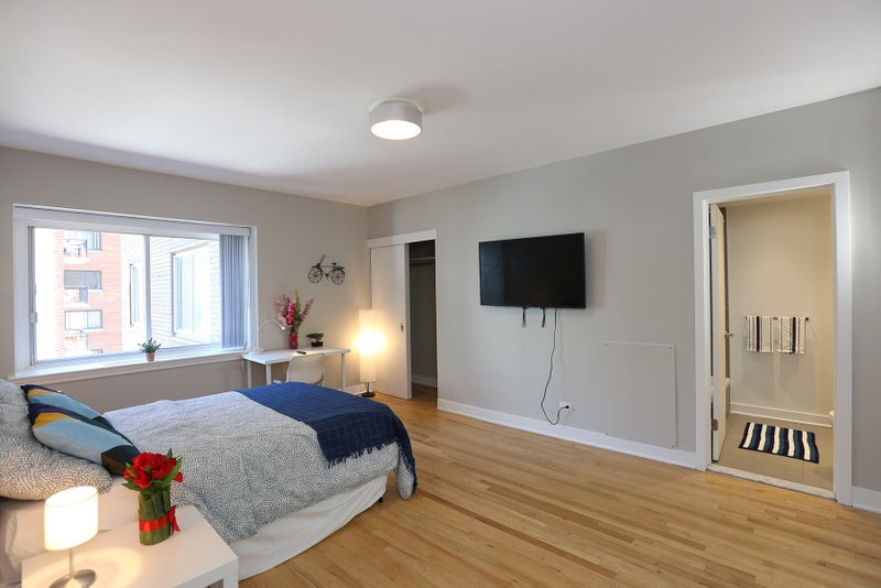 Master Room is our most spacious and luxurious bedroom type. It comes with a private/ensuite bathroom for the exclusive use of the occupant. It has a full size bed, study desk, nightstand, 65" Smart TV and a streaming device. Perfect fit for students looking for ultimate privacy and comfort. The private bathroom inside the room gives the feeling of living in a studio. Big windows allow an abundance of natural light to enter the room.