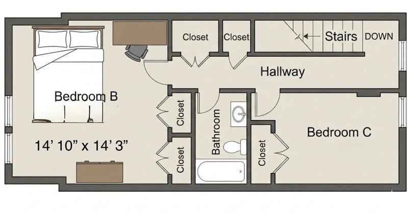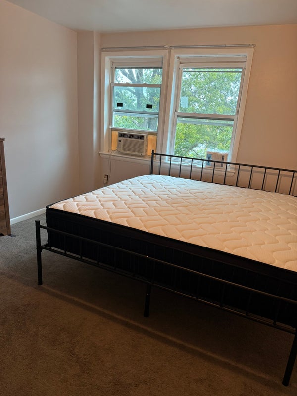 The Room ∙ King bed w ” hybrid pocket spring memory foam mattress ∙ drawer dresser ∙ ” desk w drawers, ergonomic mesh chair ∙ Furniture months old ∙ Central air & heat; window AC for added room control ∙ Outlets w USBA & USBC ports ∙ closets + hall closet ∙ Carpet, top floor of level unit