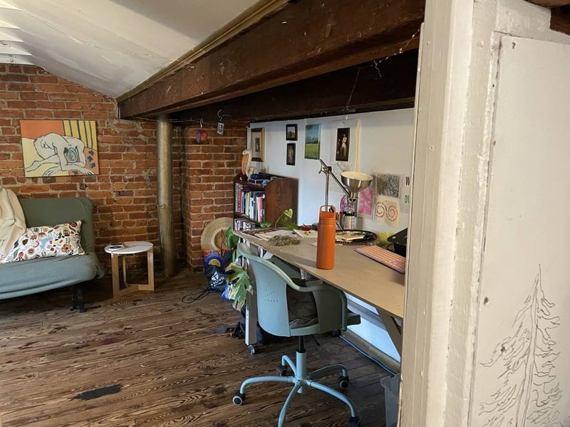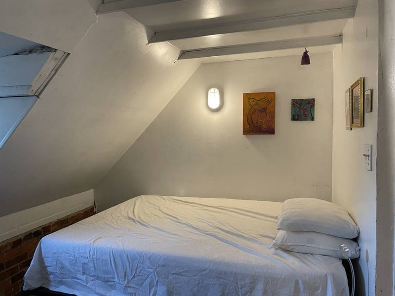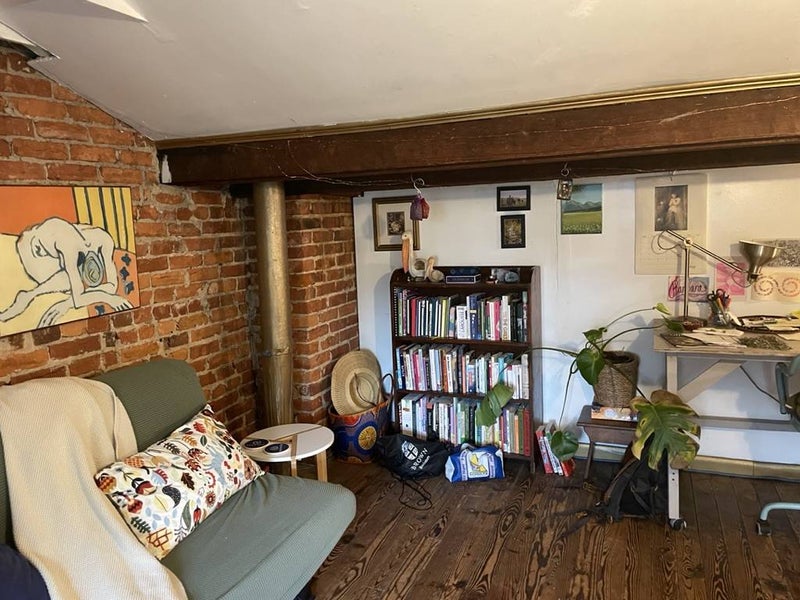 About the space: It's a charming attic space with exposed brick, wood floors, a bedroom and a separate office/living space. Rent is $800 per month for the attic and $670 for the small room with a shared balcony plus utilities (average $80-$150 a month over the year). We also pay $40/month per person for a monthly cleaning service. The lease opens on June 1, but the space will be available to move in starting May 20 for pro-rated rent. The space is currently furnished as pictured with a bed, mattress, dresser, couch, desk, chairs, and side table. However, if you have your own furniture to bring, we can arrange to have it unfurnished.