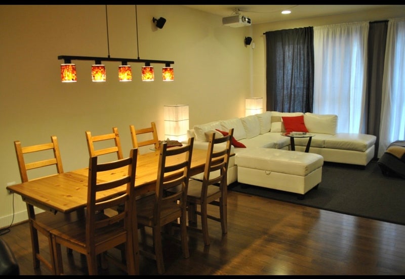 •Fully equipped and spacious modern kitchen, fully-furnished dining and living area with a projector.