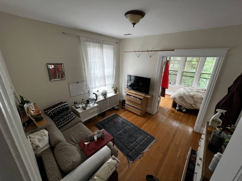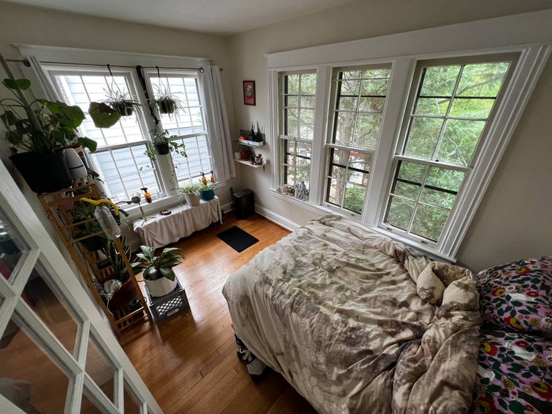 The bedroom has lots of space and can come furnished. It has hardwood floors and two large windows facing east and south, providing lots of natural light. The bathroom is shared with one other housemate.