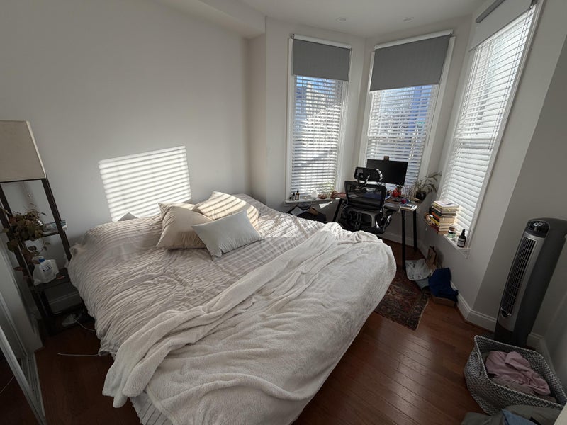 Second-largest bedroom in a newly renovated 4BD/3BA Victorian row home in Truxton Circle, steps from Shaw and Bloomingdale. The room comes with a queen bed, a dedicated workstation, and oversized east-facing windows that fill the space with morning light. Private en-suite bathroom included. The house features brand-new hardwood floors throughout, an updated kitchen with stainless steel appliances, in-unit washer/dryer, and a private rear patio — great for hosting or just unwinding. You'd be joining three grad students (30, 28, 30) who've lived together for two years. We keep the common spaces tidy, respect each other's schedules, and hang out when it makes sense. No drama, no strict house rules beyond the basics. Who we're looking for: Someone responsible, respectful of shared spaces, and easy to communicate with. You don't have to be home all the time or be best friends with us — but it helps if you're the kind of person who picks up after themselves and gives a heads-up if something's off. We're particularly open to people coming to DC for an internship, fellowship, or summer program — the room works well as a furnished, move-in-ready base without a long-term commitment. What to expect: A calm, functional, adult household. We're all busy with work or research during the week, so the house is generally quiet on weekdays. We have a group chat for coordination and try to sort things out directly if anything comes up. Utilities are split evenly. Location: 12-min walk to NoMa Metro (Red Line), 15 min to Shaw-Howard/Mt. Vernon Square (Green/Yellow). Giant and Safeway within walking distance, Whole Foods about a mile away. Easy access to Capitol Hill, Dupont, and downtown. $1,200/month, utilities split on top.