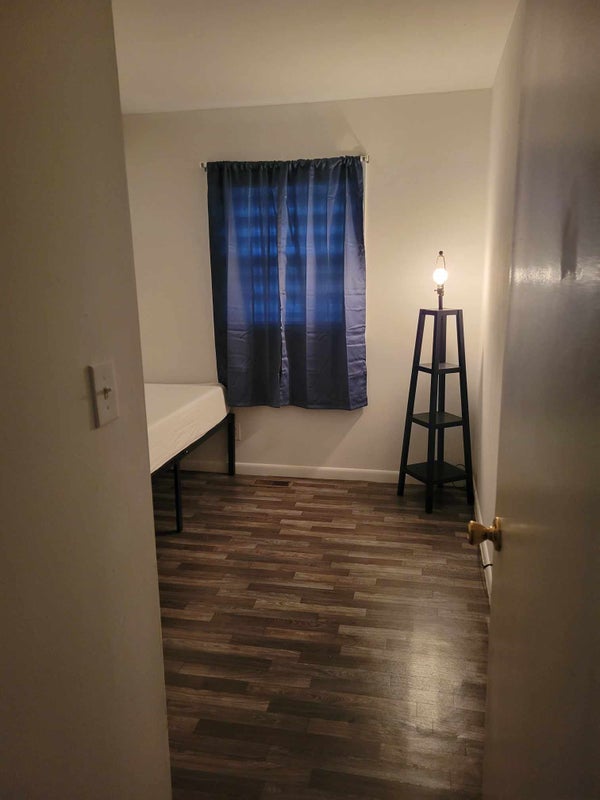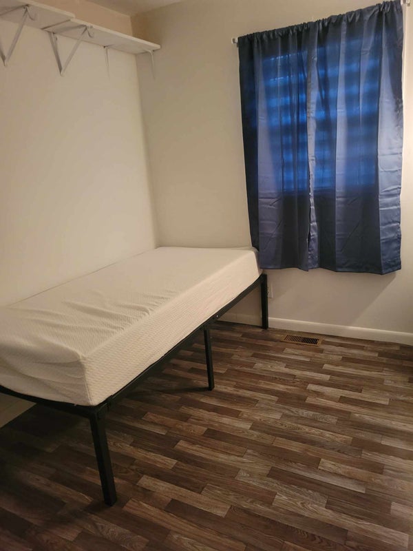 Small room , fridge and microwave. Smoking outside only. Shared bathroom. We have 4 dogs it gets loud when someone comes in the house. Laundry in basement. We stay to ourselves and don't like a lot of people coming in and out. Bus stop close by. 1 parking space can bring cat must keep in room at all times
