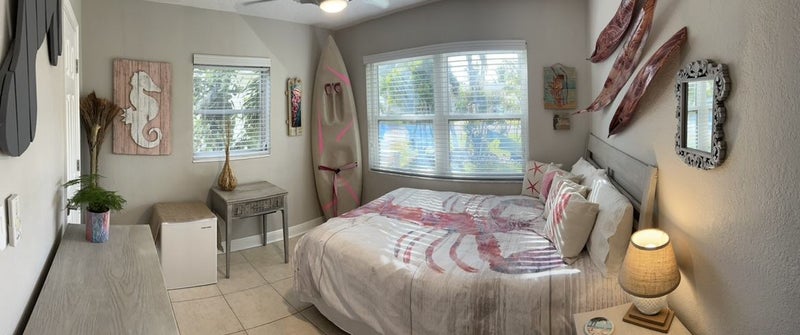 Four minutes from the beach and friendly pets are welcome. Well maintained four bedroom pool home with bar room and pool table in a safe neighborhood. High speed internet, cable TV, washer/dryer and mini fridges in the bedrooms. Rooms are very sunny/great light. Bedroom decors can be changed if you don' t like the decorating scheme, I have lots of options. About the roomies: I am the homeowner and will be gone for months at a time traveling, home a few weeks, and than out traveling again. You will share the home with a 30 year old male who works full time outside of the home and a friendly lab mix dog and a cat who live in the home full time. Recently upgraded all appliances to stainless steel with gas stove.