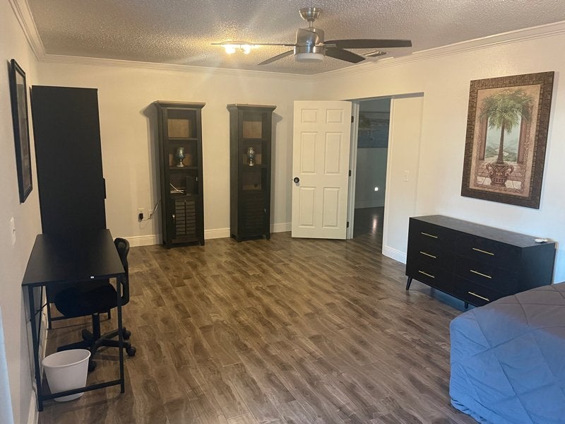 Very spacious, fully furnished room with its own private entrance available in a prime Melbourne location. This oversized room offers plenty of space to relax, work, and store your belongings while enjoying added privacy and convenience.
