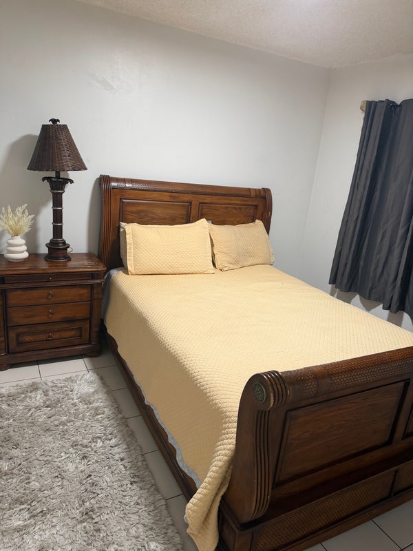 Renting a room in a 2 bedroom 2 bathroom duplex apartment shared kitchen space with washer and dryer available room is large holds a queen sized bed with a 55in tv mounted on wall large closet space room very tidy and clean would like it to stay that way