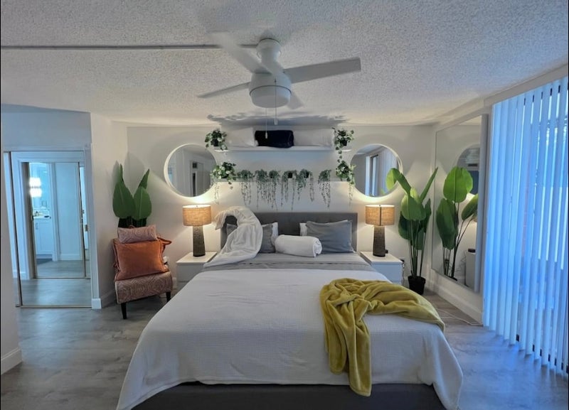 Master en-suite. Double sink bathroom, King size bed, private patio. Access to kitchen and common area. Have your own personal mini fridge and microwave for more storage. Kitchen is fully supplied. The condo has 3 bedroom and 2 baths. Flexible start date. Smoking outside only. Andover area. 15 min drive to Hollywood Beach. Contact for video it’s not uploading on here.