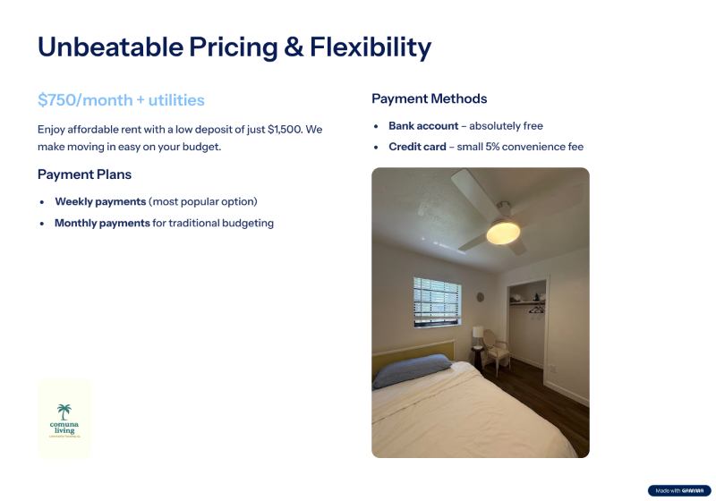 ROOM FOR RENT in COLIVING HOUSE with OTHER PROFESSIONALS. Basic Details: * Rent $month + $ utilities (WiFi, water, electric, laundry) * Optional Bed provided * Shared bath with other person * Furnished homely common areas for relaxing * Full kitchen with pots and pans, utensils * Dedicated driveway parking * Onsite laundry * All members undergo online application and background check Move in: $ Fee + Deposit + ProRated Rent + ProRated Utilities Stable Income & Job (need proof during application) Completed application Tours available every day! CALL TEXT DANIEL ON