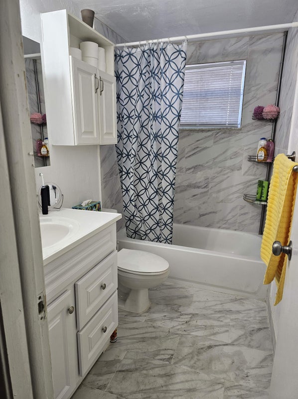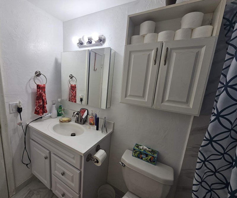Inside the Apartment there is 1 Full Bathroom with a Shower which we share and there is also a Half Bathroom available for use.