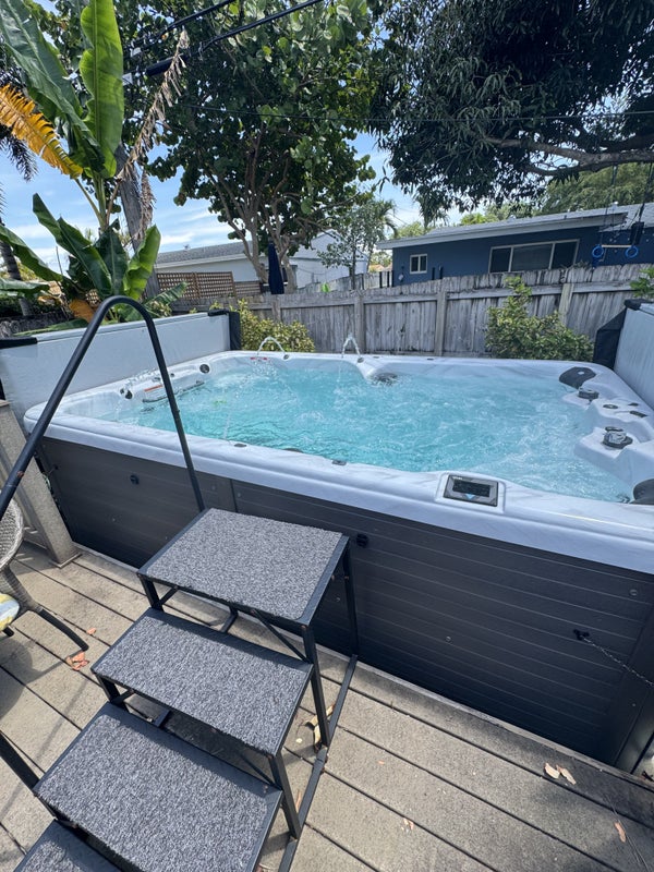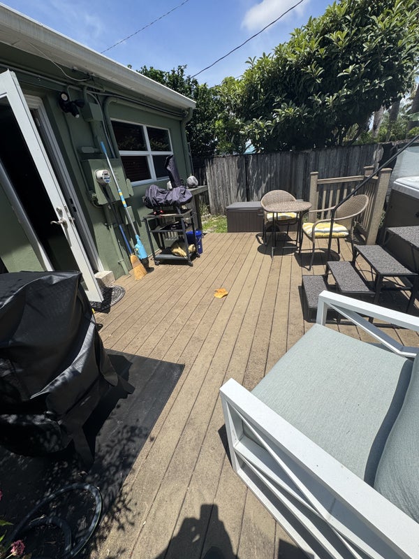 Shared living room, Back patio, and yard a nice large swim spa.