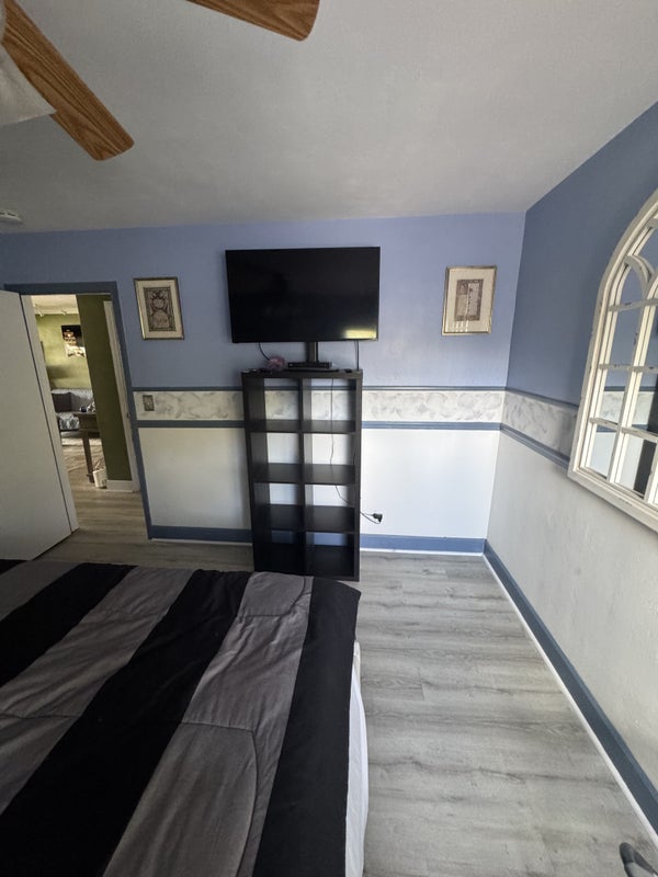 Friendly Gay Couple ( married ) seeking a renter to share our comfortable home. The room features a king bed large closet two nightstands a shelving unit and a tv and dvd player.
