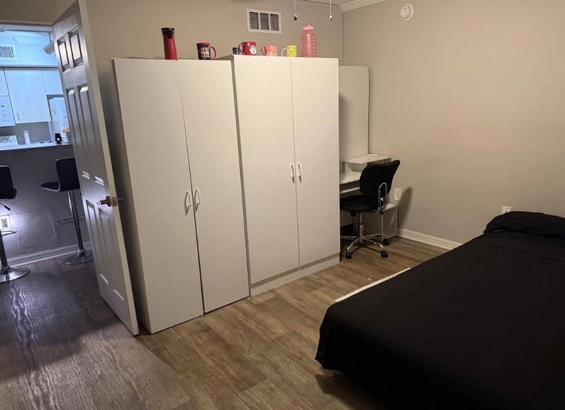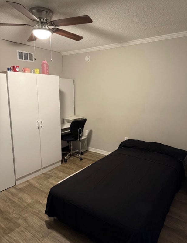 Shared Bathroom with one person, right to do laundry, to cook, use internet, it is furniture, parking available