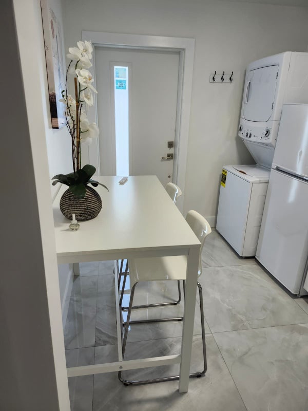 BRAND NEW, FURNITURED COZY STUDIO FOR RENT WITH TILE AND LAMINATE FLOORS, IMPACT DOOR AND WINDOW. INDEPENDENT ENTRY AND ASSIGNED PARKING SPACE. QUEEN/STANDARD SIZE BED, WASHER & DRYER- INSIDE THE UNIT, STADANRD SIZE REFRIGERATOR, ELECTRIC STOVE WITH OVEN, MICROWAVE. LOCATED IN A QUIET COMMUNITY IN PEMBROKE PINES. CONVENIENTLY SITUATED NEAR EVERYTHIG, WITH EASY ACCESS TO PUBLIC TRANSPORTATION, SHOPING CENTERS AND PARKS. AVAILABLE IMMEDIATELY. Background check required. FOR ONE PERSON ONLY, NO DEPENDENTS, NO SMOKING, NO PETS • Studio - Single Family -One history • Frist Floor Entry (independent) • Fenced • Garage Space: 1 (outside) • A/C • Water Heater • Full Bathroom • Kitchen • 1 Bedroom with Closet • Patio RENT $1,650 – MONTHLY INCLUDED: Utilities, cable, Wi-Fi, lawn maintenance REQUIRED: 1 Deposit / 1 Month FOR ADDRESS AND MORE INFORMATION CONTACT: