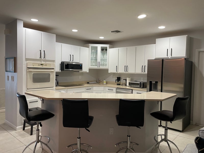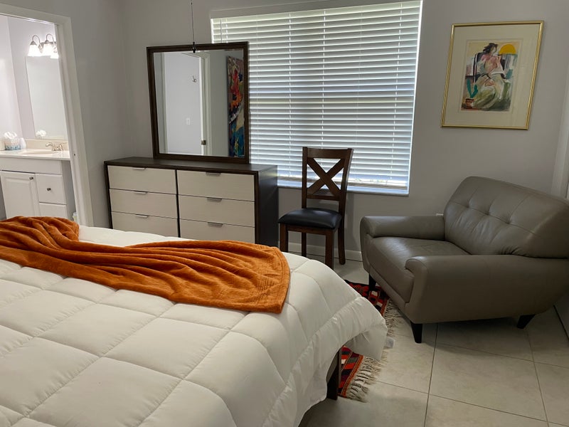 I moved to this house in Pompano Beach recently after completing renovation. There are 3 master bedroom suite with bathroom and shower inside the room. Your room has a brand new king size bedroom set and mattress, a chair and a desk, a dresser and a big closet. We have a big living room with 65 inch TV and dinning area that can sit 8 people. Big kitchen with 4 stools for breakfast area, a screened porch with furniture snd a big backyard. I love to share this beautiful house with a trustworthy person who likes gardening and living a healthy lifestyle.