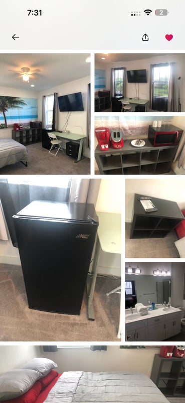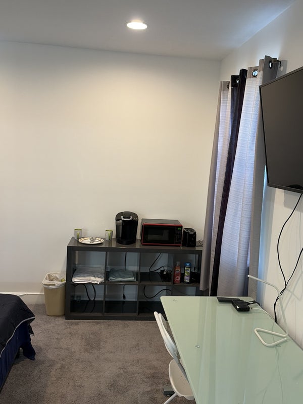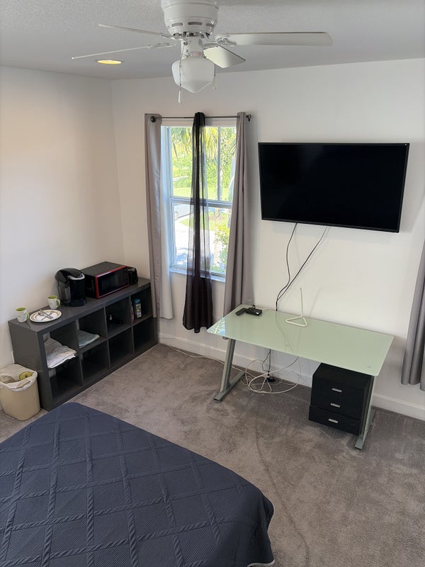 PRIVATE LIVING SETUP This suite is fully self-contained for privacy and convenience. All amenities are inside the suite, including refrigerator, microwave, dining space, and private bathroom. No shared kitchen or common areas are required.