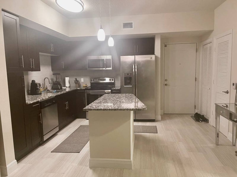 Modern kitchen with island, dishwasher, central A/C