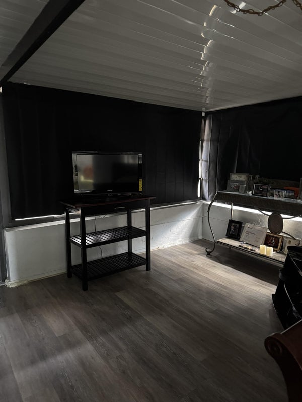 Month to month rent with security deposit. The room has a bed, tv, microwave, hot plate, fridge, sofa, private entrance a small porch. We will be sharing the laundry room. There’s two bathrooms in the house so one would be use for the renter.