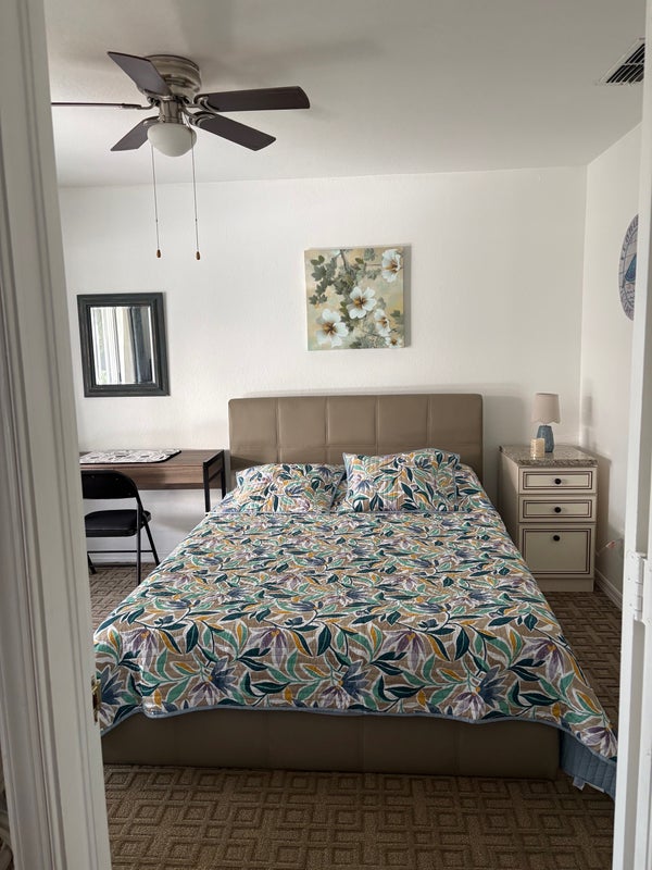 A master bedroom with bath and large walking closet, dedicated parking space, private entrance, fully furnished, lanai, share laundry. Amenities: pool, tennis court, pick-le-ball, trash. $1,200 montly rent, $1,000 security deposit. Available inmediately.