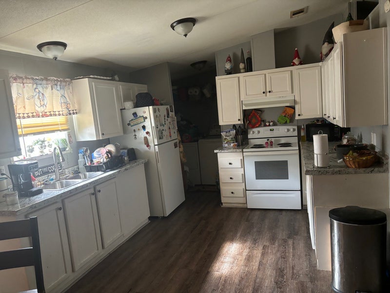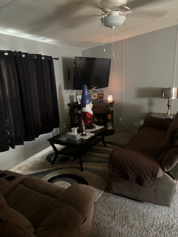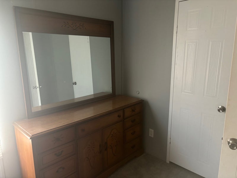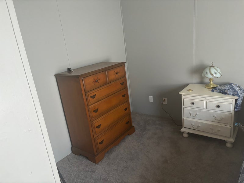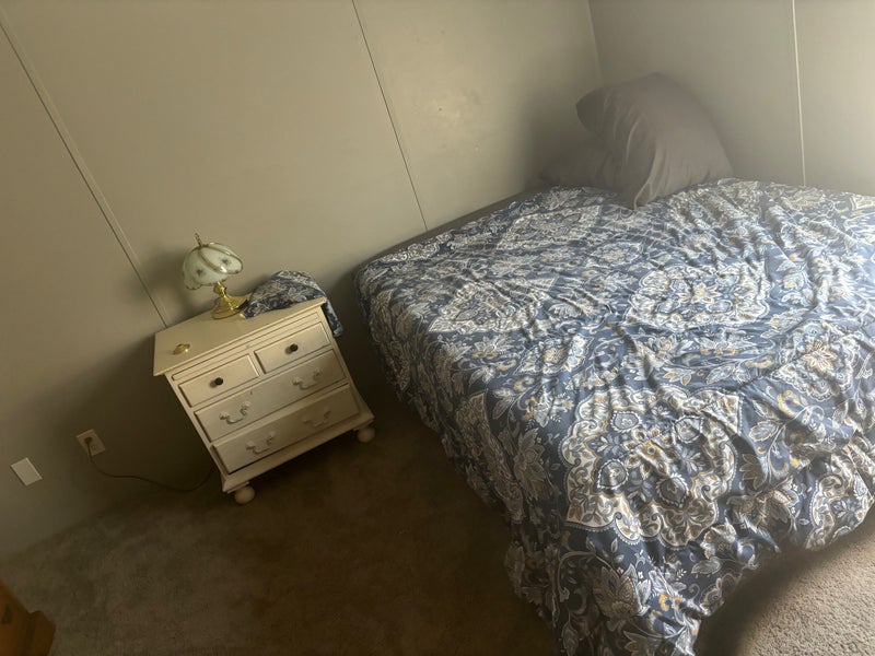 Room is furnished but furniture can be removed if you have your own I have 2 large dogs, a German Shepherd who is 2 and a 10 year old canary mastiff. Utilities and WiFi included. Washer and dryer Double wide trailer