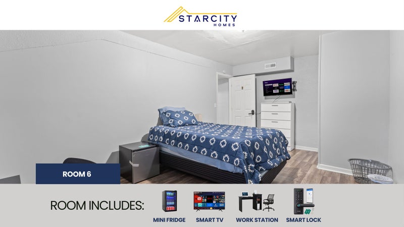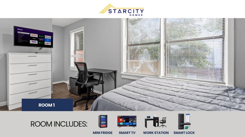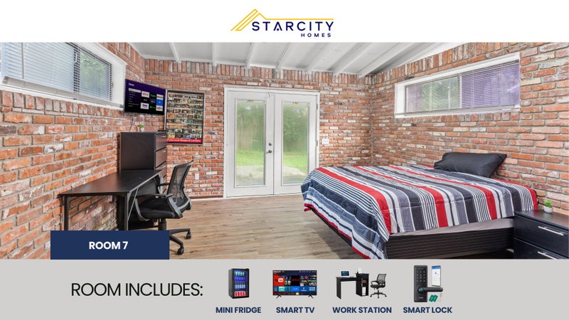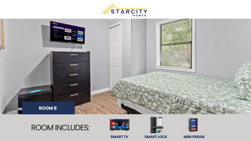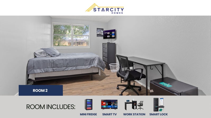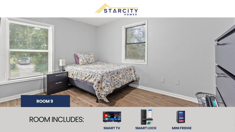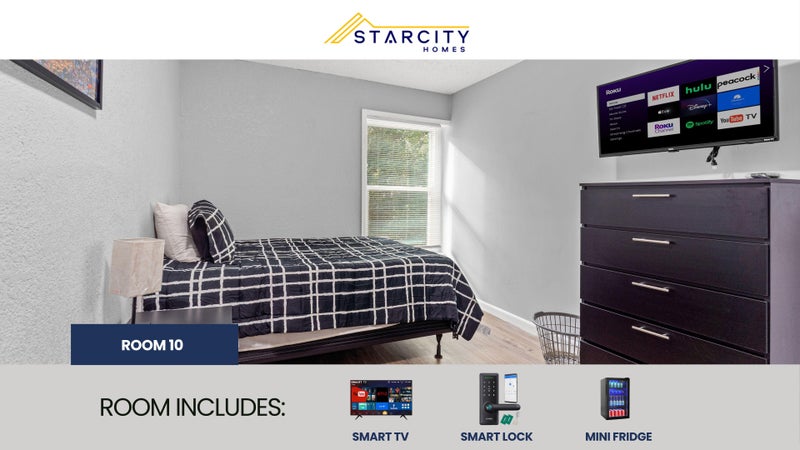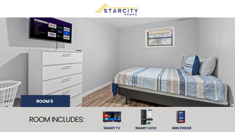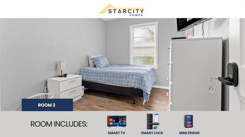 Private furnished room for rent. AN AFFORDABLE LUXURY LIVING EXPERIENCE! Each room features a Smart TV, a Mini Refrigerator, Smart Lock System and new Furniture! But there's more! This spacious Jacksonville home is completely renovated. You will enjoy the new kitchen and appliances and the sleek bathroom designs. The kitchen comes equipped with a fridge, sink, oven, stovetop, as well as upgraded appliances. The neighborhood is close to public transit, which means you won’t be far from all Jacksonville has to offer! $7 per week. Room rate includes all utilities, high speed WIFI, free laundry access, and Teladoc service. PROPERTY ID: