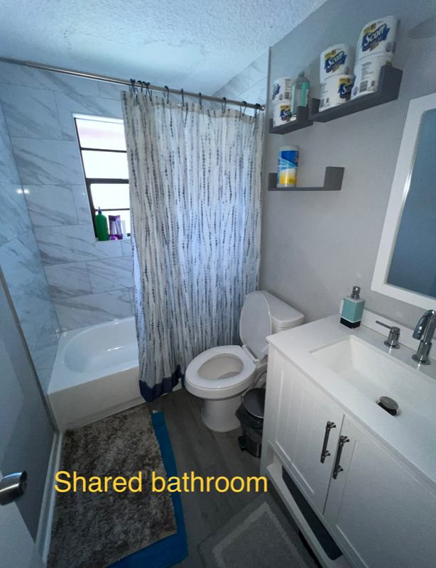 If you’re looking to save money while living comfortable, with respectful, quiet and hard working people then this is your place. Beautiful quiet neighborhood. The neighbors are retired police officers and detectives so the block is quiet. Room has new LVP flooring , closet , ceiling fan, portable fan, (smart tv upon request )and queen size bed. Shared bathroom with roomies. All utilities included, toiletries, cleaning supplies, house cleaning of bathrooms and kitchen etc.,.