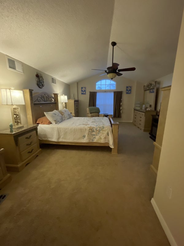 Large upstairs furnished master suite with walk in closet and en-suite private bathroom with cathedral ceiling. Electric, water, cable and WiFi included. Enjoy your morning coffee on the screened in lanai over looking the heated salt water pool/jacuzzi. Enjoy a movie on the big screen tv in the family room. You would share the common areas, all kitchen amenities, washer and dryer, included screened in lanai with heated salt water pool/jacuzzi. Off street parking in driveway. The home is smoke free and pet free except for 2 parakeets in a cage. There is no drama or drugs here. I have a large home so I rent a few rooms out to mature ladies like myself. My home and neighborhood is quiet and safe. A background check is required. ***WILLING TO NEGOTIATE PRICE FOR THE RIGHT FIT ***