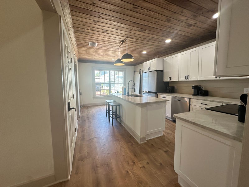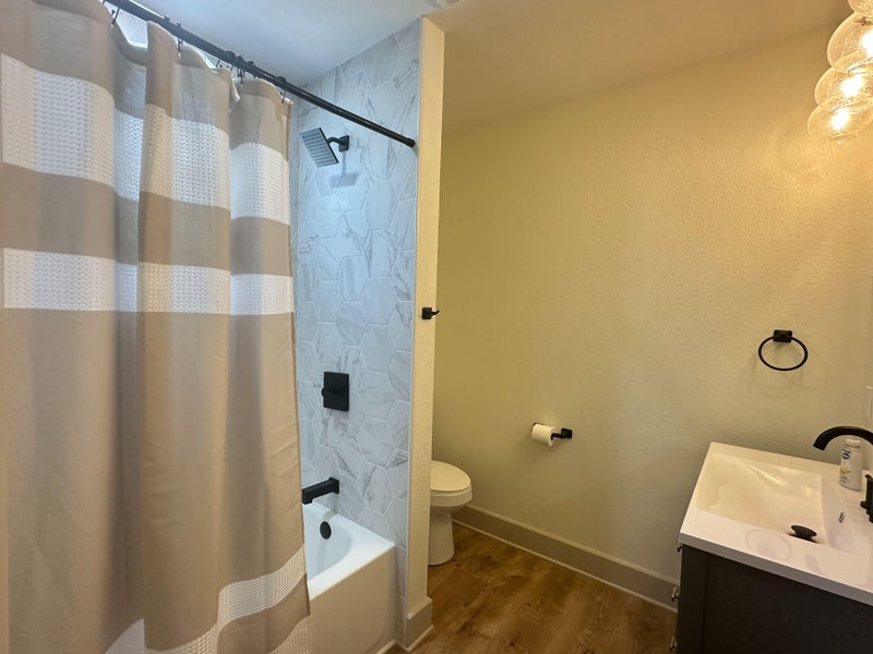 The kitchen is equipped with a fridge, sink, oven, stovetop, as well as upgraded appliances. It’s the perfect spot for you to cook at home and save money.