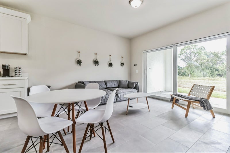 Shared spaces Living room kitchen dining spaces in unit laundry balcony waterfront backyard patio with hanging chairs