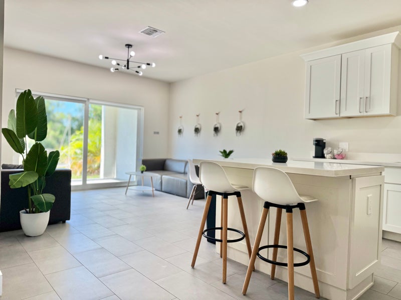 Shared spaces Living room kitchen dining spaces in unit laundry balcony waterfront backyard patio with hanging chairs