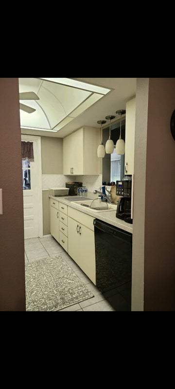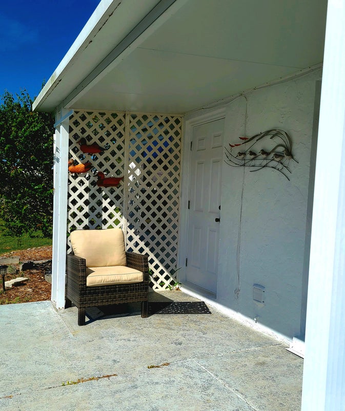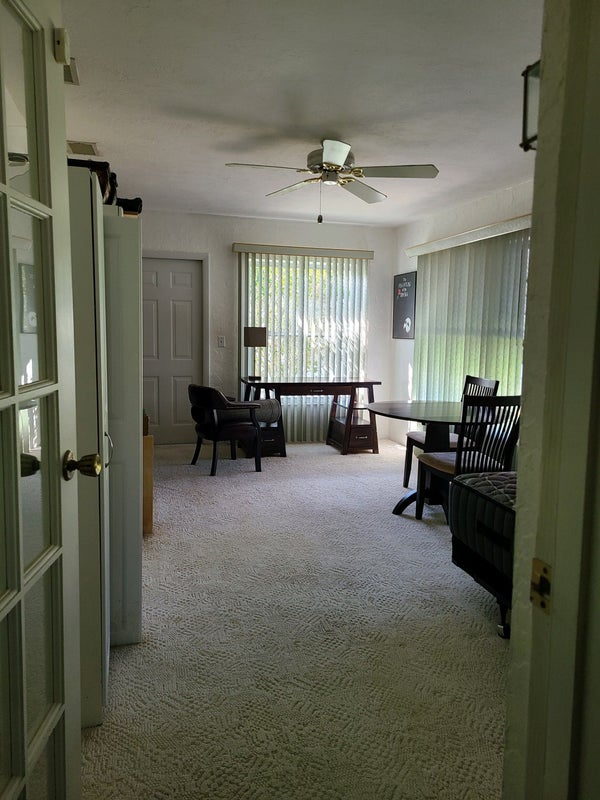 This is a 55 Community & a non- smoking home; a non-smoker is preferred. However, the room has a private entry from a covered patio outside your entry door, where my current roommate smokes at times. Your picture windows have a great view with plenty of natural light. Vertical blinds provide day sleeping (if desired). Adequate storage is provided, plus a desk, an overstuffed chair, TV, & large tall Bureau. The closet unit is about 8' long. Good manners and kindness will always be extended, & it is hoped for in return. I'm friendly but private person, & seldom have guests. My service dog lives with me; he is a loving gentle giant (not a pet). Our other roommate of 2+yrs is also a kind & private woman. Similar persons only inquire, please.