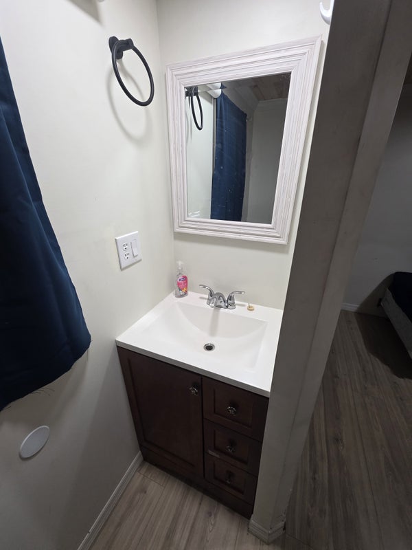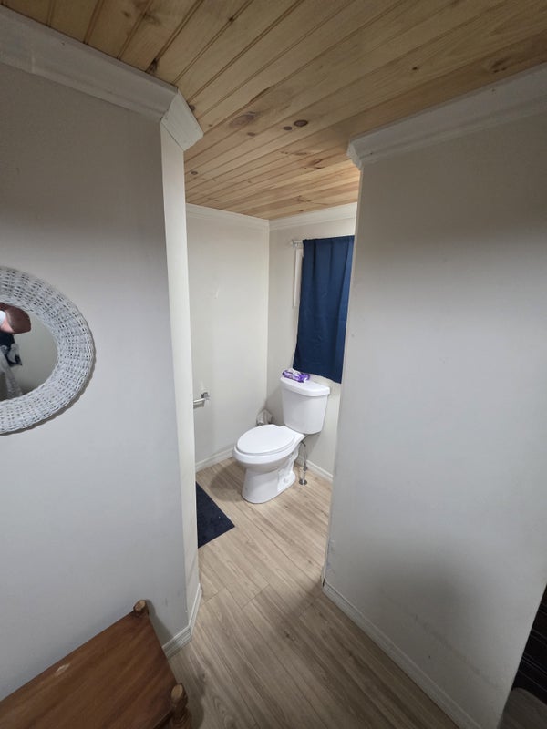 The room is at the front of the home closest to street. It has been completely remodeled. It has its own bathroom a sink with cabinet and mirror also has a small corner shower. Full privileges to kithen. There is a washer and dryer outside. in the laundry shed full privileges. There are 2 very large porches both screened in large yard small dog on approval.