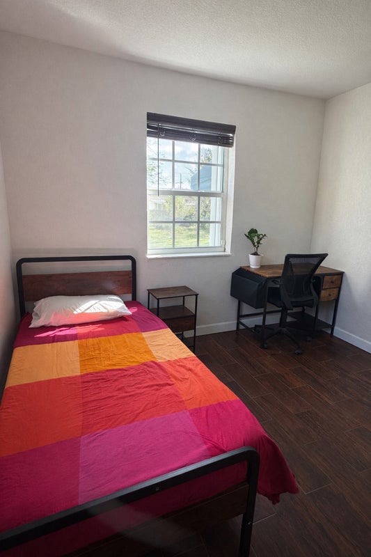 A furnished private bedroom is available in a comfortable and quiet house. The room is ideal for someone looking for a convenient place to live while staying close to Miami's main areas. The home includes a shared bathroom, equipped kitchen, washer and dryer, central A/C, all utilities included, and high-speed Wi-Fi. On-street parking is also available.