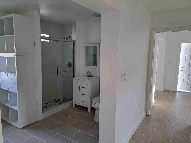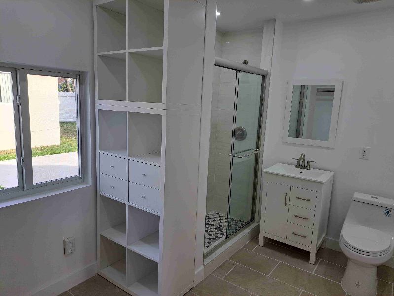 Upon entering has a doublegated door for privacy! Just to the right there will be a picnic barbecue area! And entering the unit there will be a living room to the left, kitchen to the right, and as you go through the living room you will get to the bedroom through a pocket door that leads into the master bedroom which is xand just to the right of it there is the bathroom and closet very spacious! Just to the left of the bedroom there's a door that leads to the laundry, The door has a window for sunlight, this inlaws quarters is very spacious and located in a very quiet residential area! Nearby shopping mall, nearby Publix, nearby WinnDixie, and also nearby Walmart, also movie theaters, and plenty of restaurants to choose from!