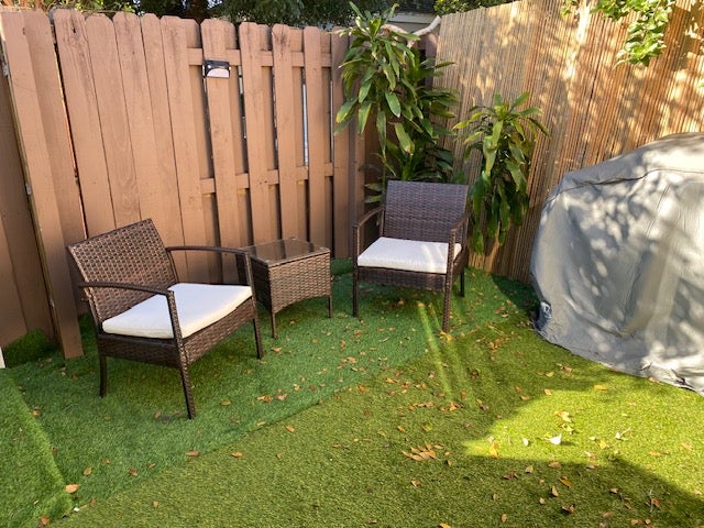 Room Features • Large private bedroom with queen bed • Private bathroom • Private patio • Two oversized closets • In room TV, high speed internet, fridge/freezer, microwave, and air fryer • Utilities included (electric, water, internet)
