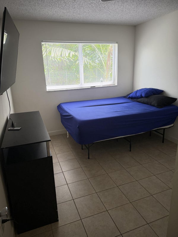 Habitación privada, con cama, TV, uso de cocina, lavadora y secadora, zona tranquila, supermercado al frente del edificio, cafés