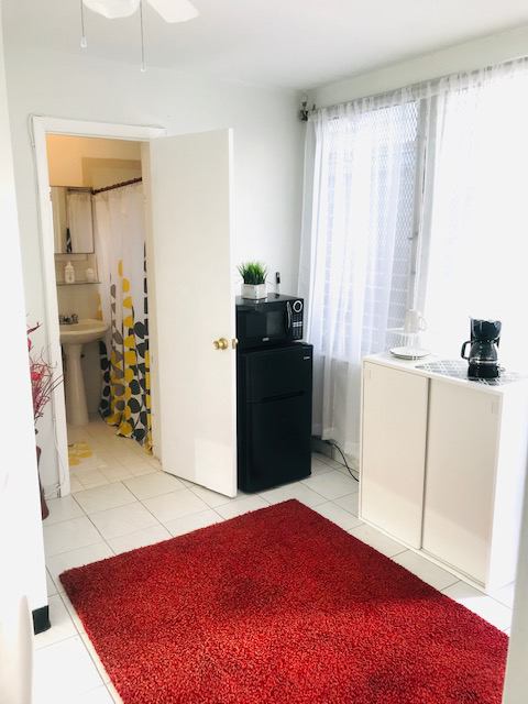 Features : Queen bed, closet & drawer ,TV. computer desk, Netflix , speed WIFI. Coffee station, microwave, fridge,. A/C and a parking spot for 1 vehicle. Property has security camera.