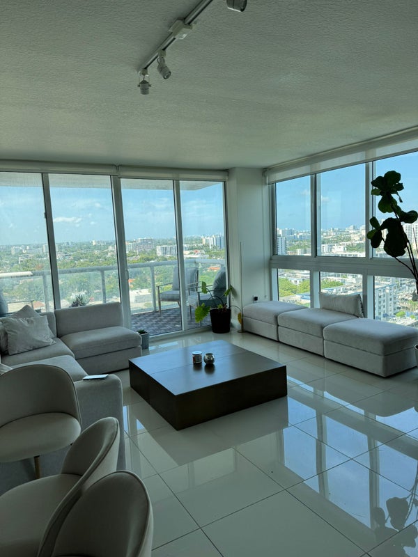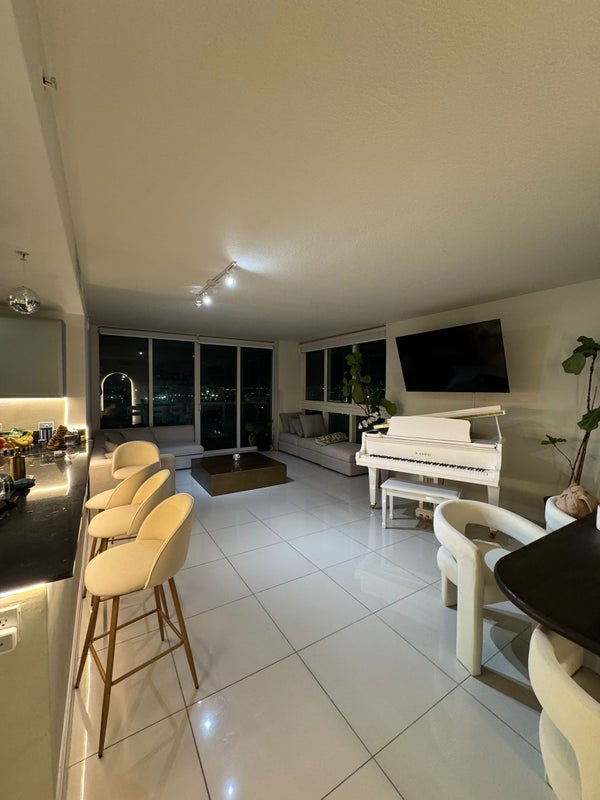 Beautiful view of the Miami skyline and the Miami River. It's a 3 bedroom, 3 bathroom apartment, with a fully furnished living room and kitchen.