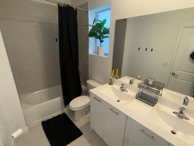 Private space available in a clean, quiet home. The house has a modern kitchen, spacious living room, and a comfortable private bathroom. The environment is respectful and drama-free.