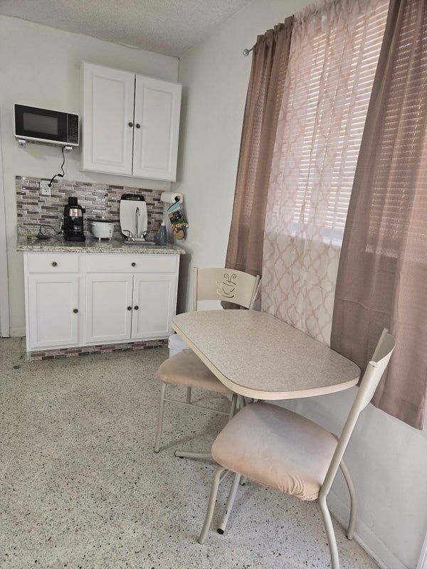 Private entry Efficiency house. One parking space for one person not furnished only small table chairs. West Hialeah good neighborhood for serious working person looking for a quite secure place to live. All Utilities included no pets, for one person. One month deposit.