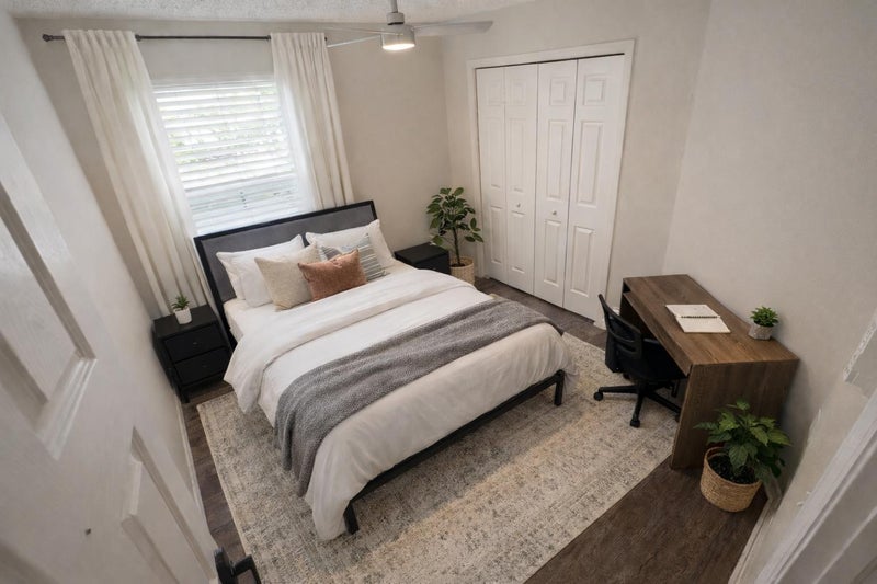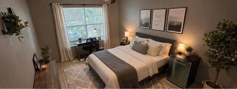 Private furnished room for rent. No Movein fee! Free fast wifi Smart lock rooms Cleaning services included! Bus routes nearby Plenty of parking minutes to Orlando International Airport 8 & 7 around the corner $4 per week. Room rate includes all utilities, high speed WIFI, free laundry access, and Teladoc service. PROPERTY ID: 1