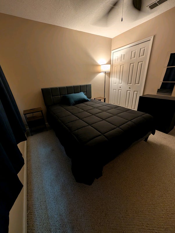 SEEKING ROOMMATE to SHARE my 4-bedroom 2 story townhouse. I occupy the master bedroom downstairs, and I have a small male Shih-tzu that stays downstairs with me and am looking for a roommate to rent a FURNISHED bedroom upstairs (has a QUEEN-size bed, 2 nightstands, 42” TV WITH REMOTE, chest of drawers, a floor lamp and a ceiling fan (room measurements are 11 ft. x 10 ft). There is a full bathroom and laundry room upstairs. You will share the laundry room and the kitchen with me, and the current tenants. The length of the lease is for 12 months minimum, but I am open to do 2 years or longer with the option to renew. The $400 deposit is refundable as long as the room, bathroom, laundry room, kitchen etc. are in good condition.