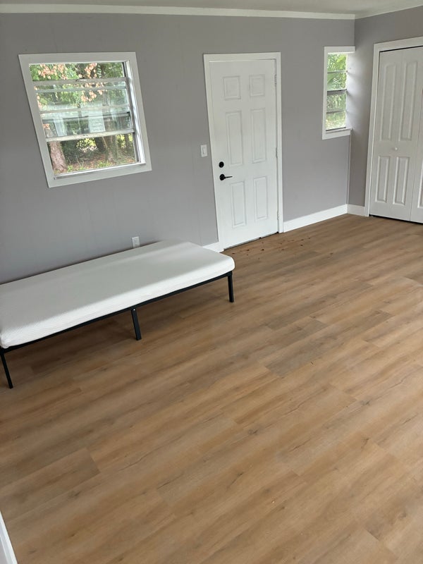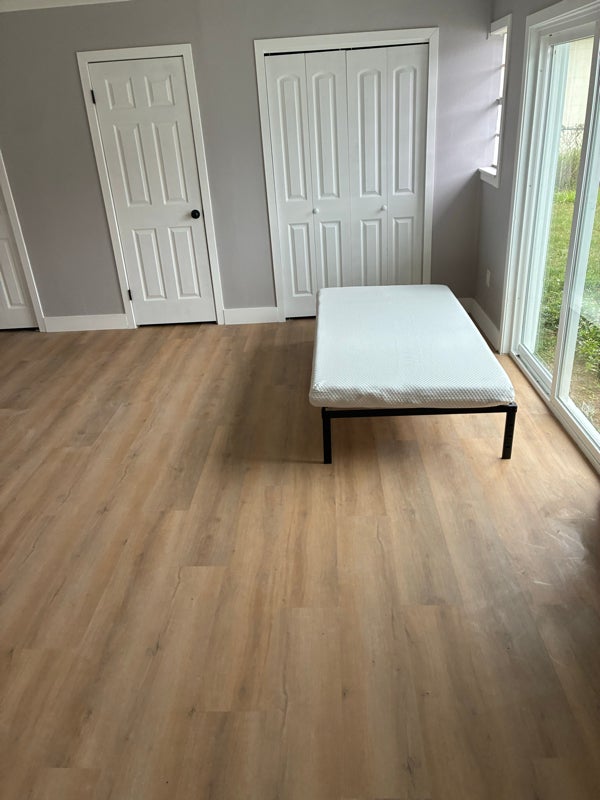 This expansive suite offers a rare level of independence within a shared home setting. Thoughtfully positioned for privacy, the room features two private entrances, dual closets, direct access to a private rear patio, and convenient rear drivethrough entry. Its layout provides a secluded feel, separate from the main living areas — ideal for someone who values both space and discretion.