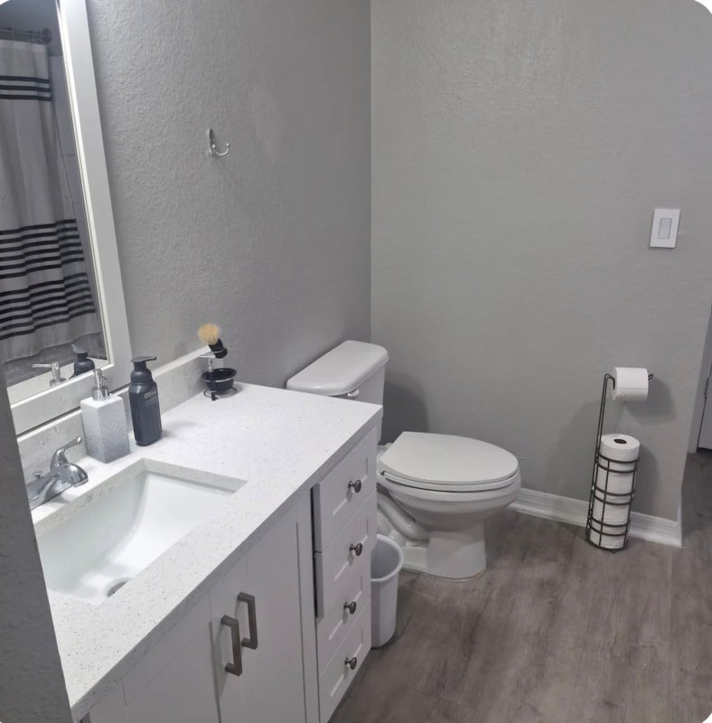 It's a room/bathroom in a remodeled 3 Bedroom apt. Overlooking a Lake. Gated community, free parking, indoor basketball court, 2 swimming pools/jacuzzi, huge gym. ALL UTILITIES INCLUDED.