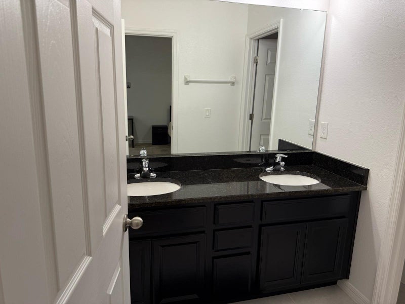 Private EnSuite Bathroom: Features a spacious doublesink vanity with plenty of storage, modern lighting, and a large walkin showertub combo.